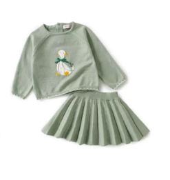 Groen setje met eendje – trui en geplooid rokje